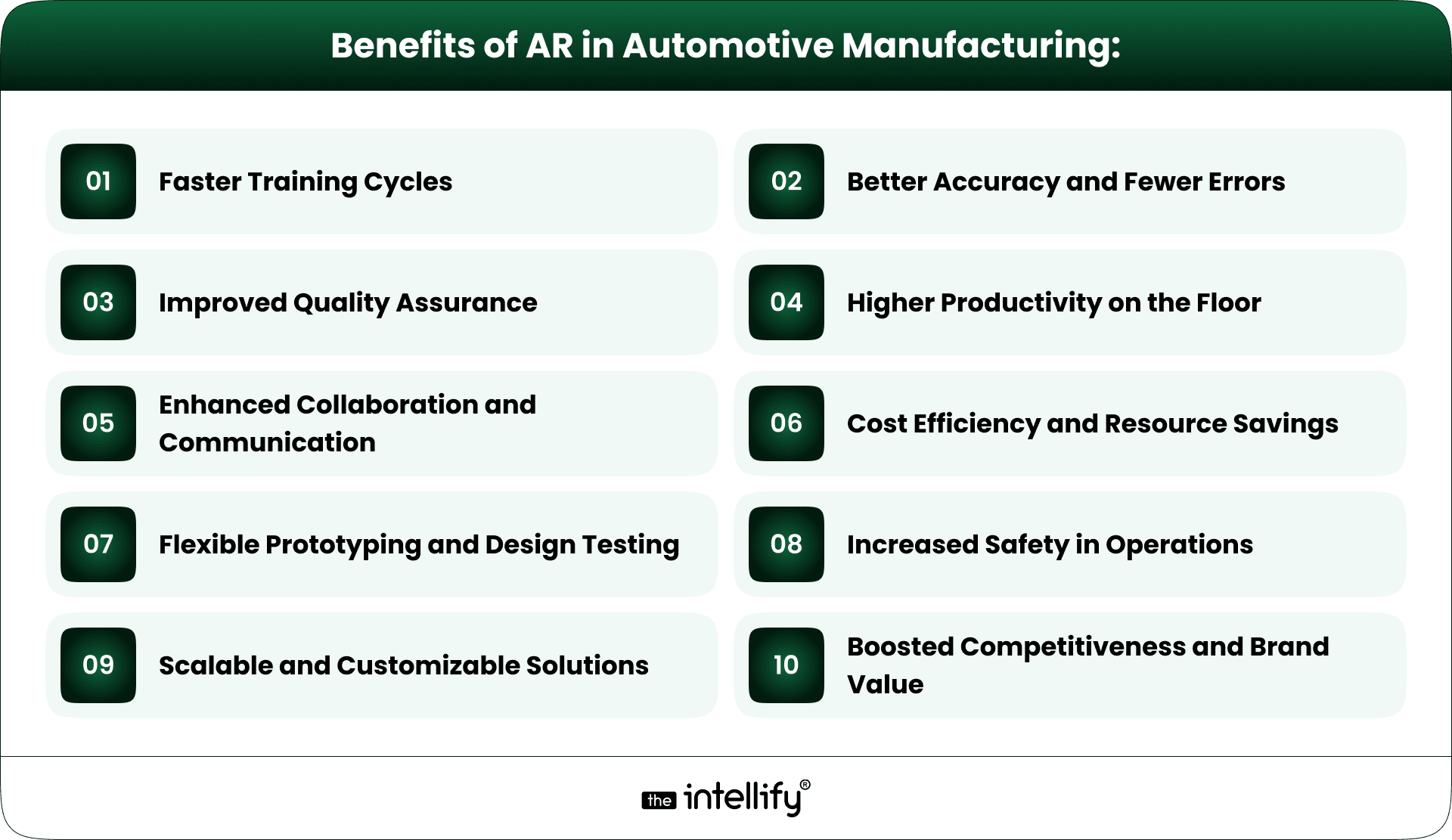 • Scalable and Flexible Solutions: AR platforms can be customized into various production needs, either for high-end vehicles, electric vehicles, or component manufacturing. Scalability allows for easier roll-out of AR to various locations and teams.