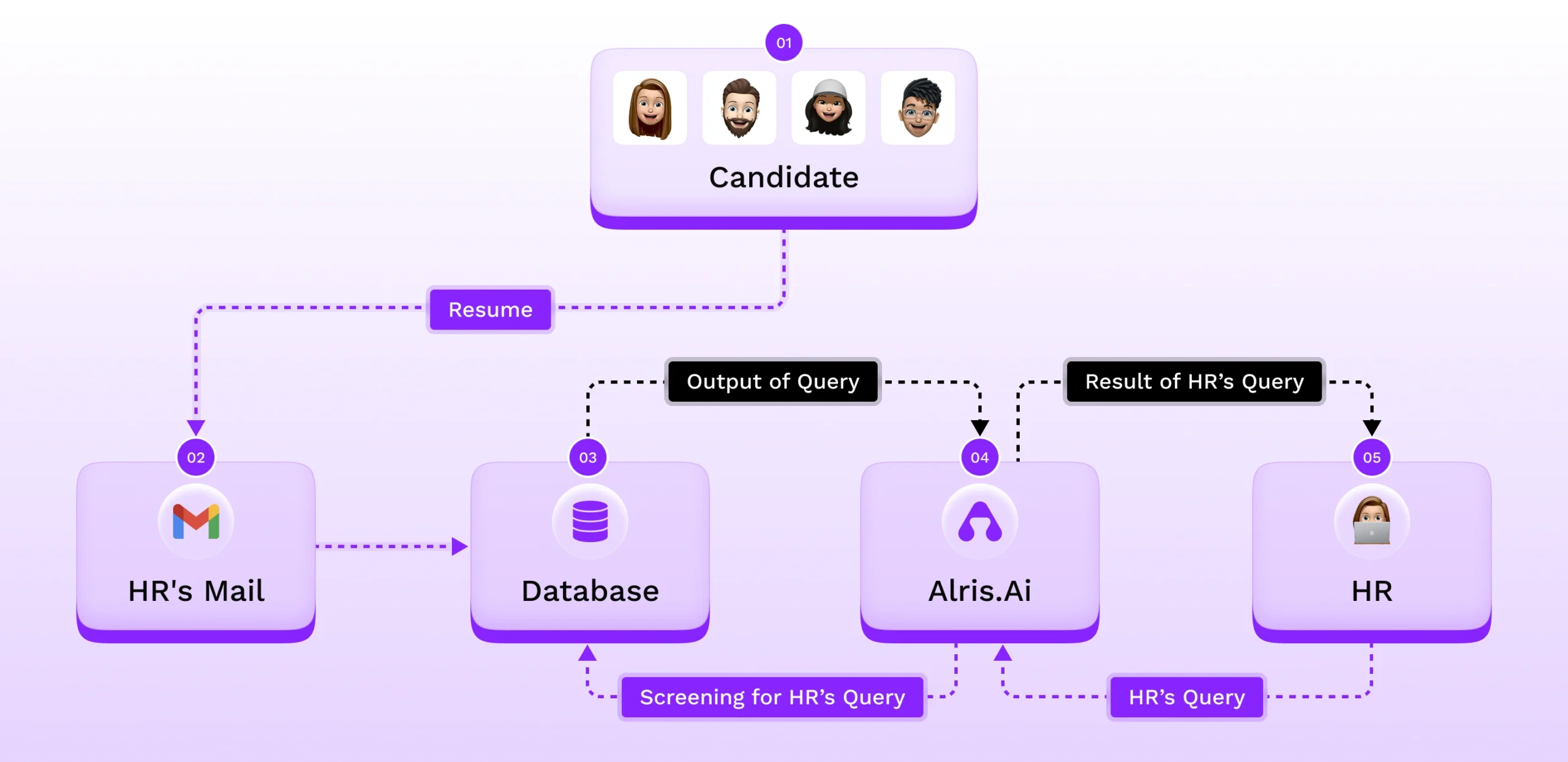 Alris is an end-to-end AI platform utilising client-owned LLM keys to drive Smart Screening (unbiased, rapid candidate shortlisting) and Smart Automation (achieving "zero inbox" with automated email processing). This dual solution transforms enterprise bottlenecks in HR and customer service, delivering significant efficiency and cost savings.